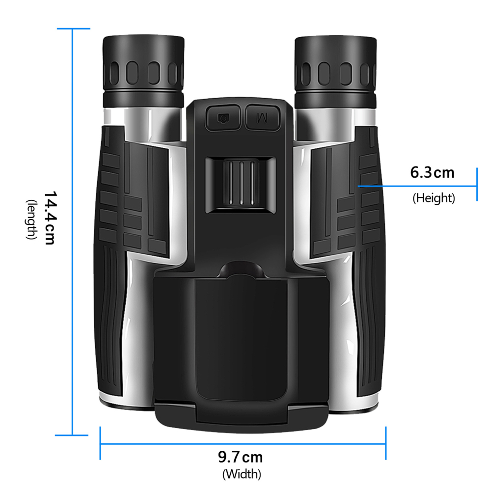 Les jumelles caméra appareil photo numérique W32 12x32 de DIGITAL OPTIC sont des jumelles avec grossissement 12x. Elles intègrent également une caméra avec écran LCD couleur 2,4'' et un enregistreur Photo/Vidéo. La résolution des photos est de 48Mpx et les vidéos UHD 2.5K, qui peuvent être enregistrées sur carte microSD jusqu'à 32Go (non inclue). Elles possèdent une batterie rechargeable et un filetage pour être posées sur trépied.