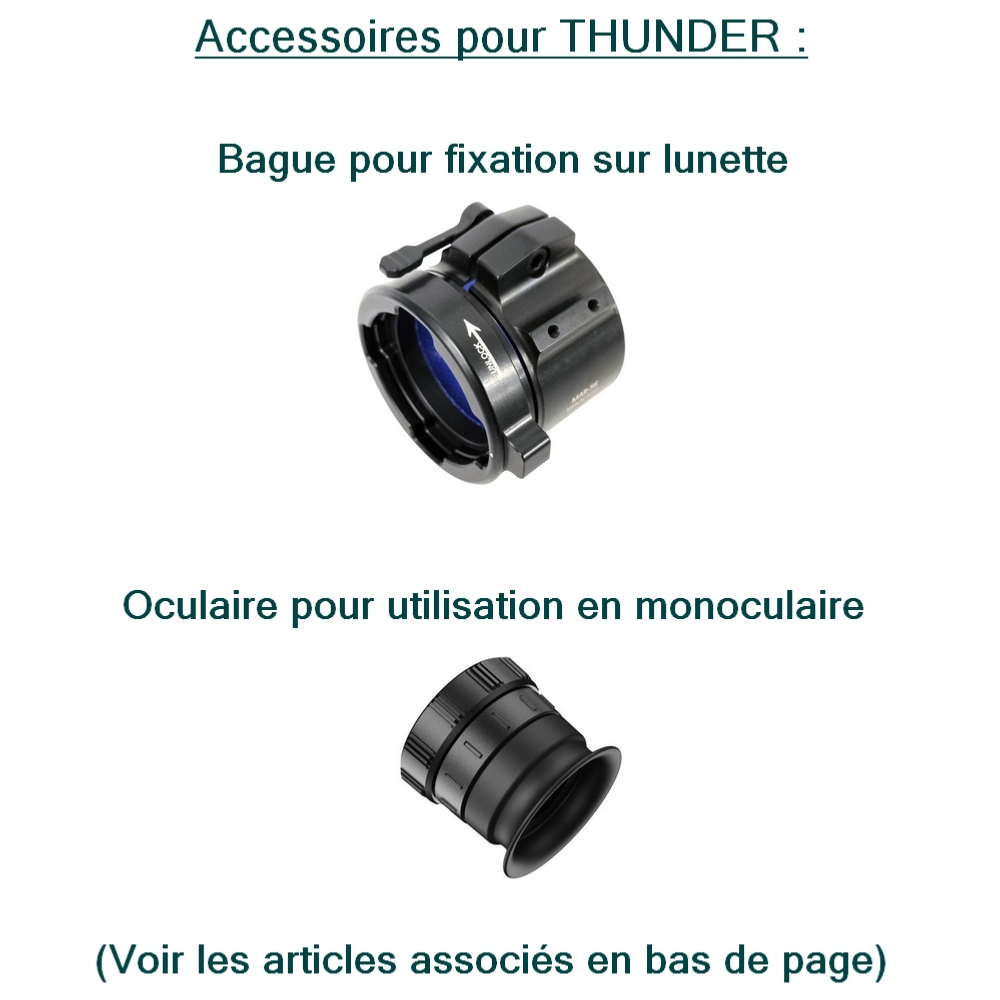 Le module de vision thermique HIKMICRO THUNDER (CLIP-ON) TH35C 3.0 permet d'ajouter la vision thermique à une lunette de visée existante en le clipsant simplement sur l'objectif. Vous conservez ainsi les avantages de votre lunette en ajoutant la vision thermique. Il possède 1 capteur thermique de haute résolution 384x288 pixels et haute sensibilité NETD <15mK avec une portée de détection allant jusqu'à 1800m. Sa conception offre une grande résistance aux chocs sur tous les calibres jusqu'à 1000g/0,4ms et peut être utilisé pendant 12h en continu avec ses 2 batteries échangeables et rechargeables fournies. Il peut également être utilisé en monoculaire en ajoutant l'oculaire en supplément (non fourni).